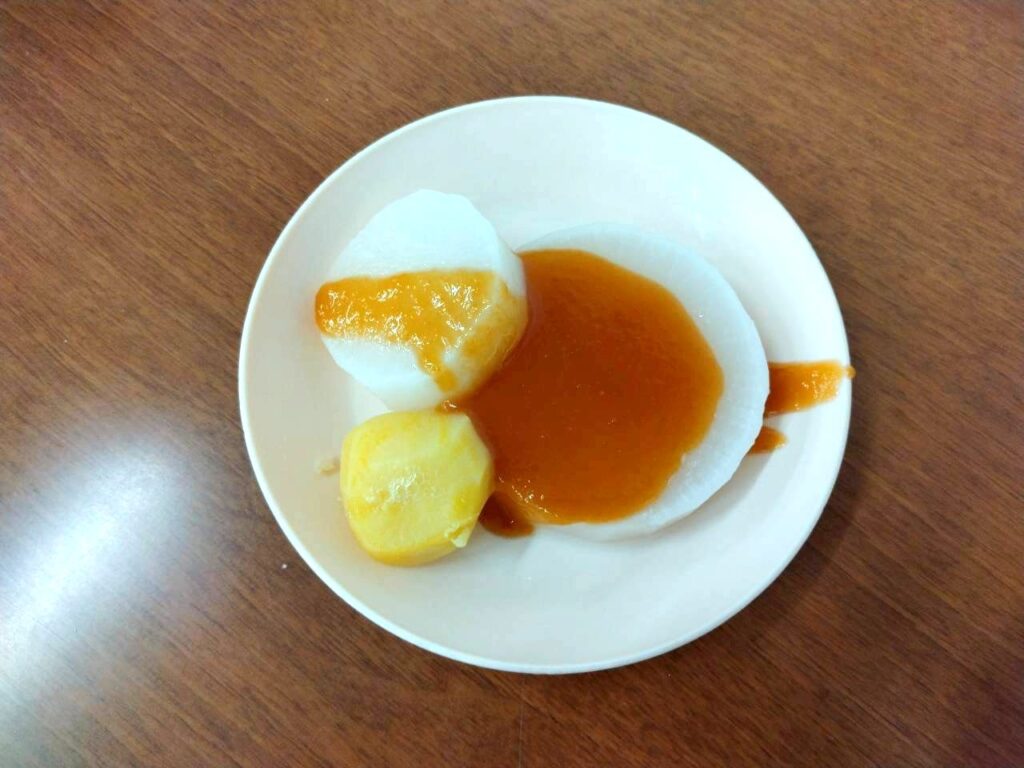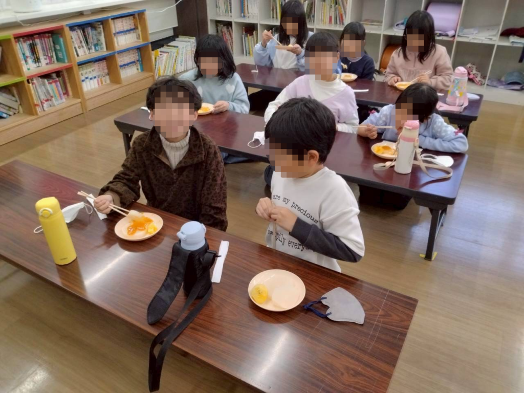 児童クラブでは、収穫した大根とじゃがいもを「味噌おでん」にして特別おやつとしていただきました。