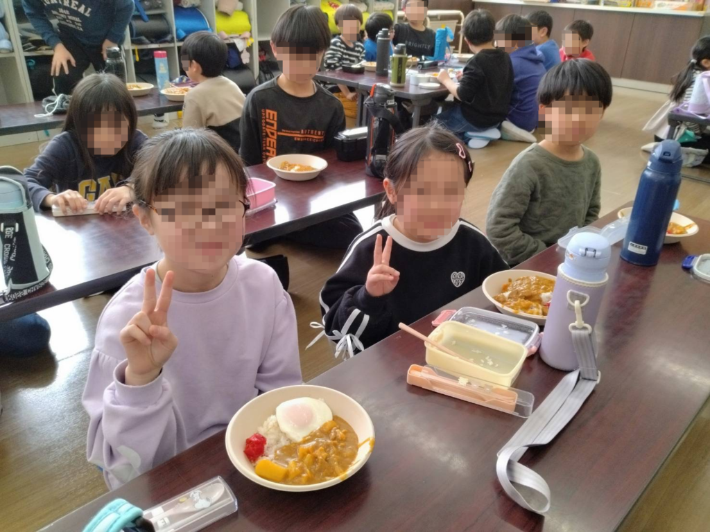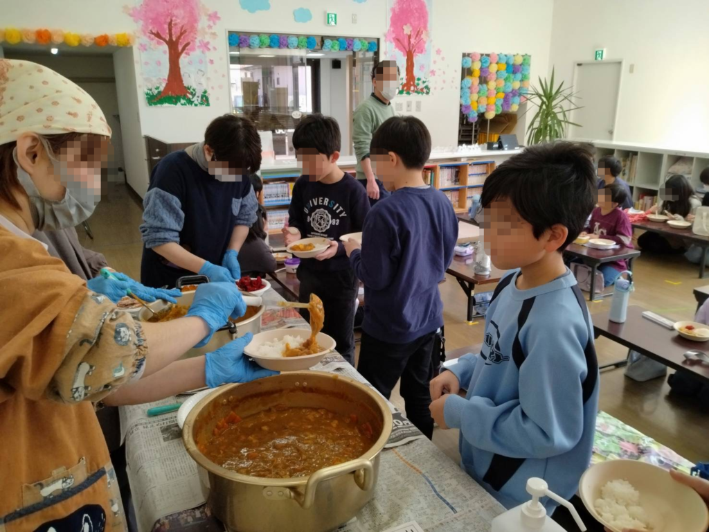 修了式の日、お昼ごはんは先生たちの特製カレーライス。